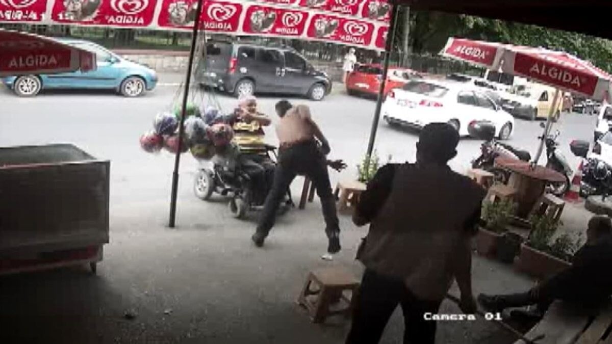 Sopalı saldırgan 2 engelliyi de darbetti.