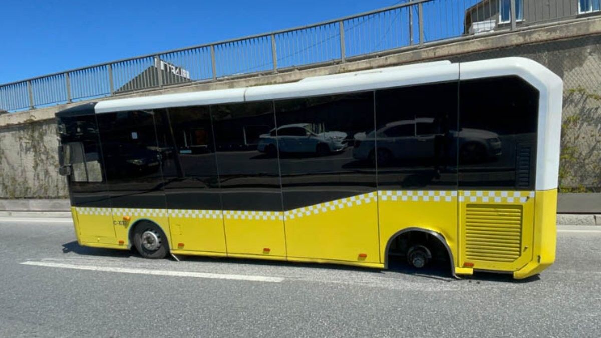 Beykoz'da Kavacık Mahallesi Yeni Riva Yolu'nda sefer yapan İETT otobüsünün, sol arka lastiği yerinden çıktı.