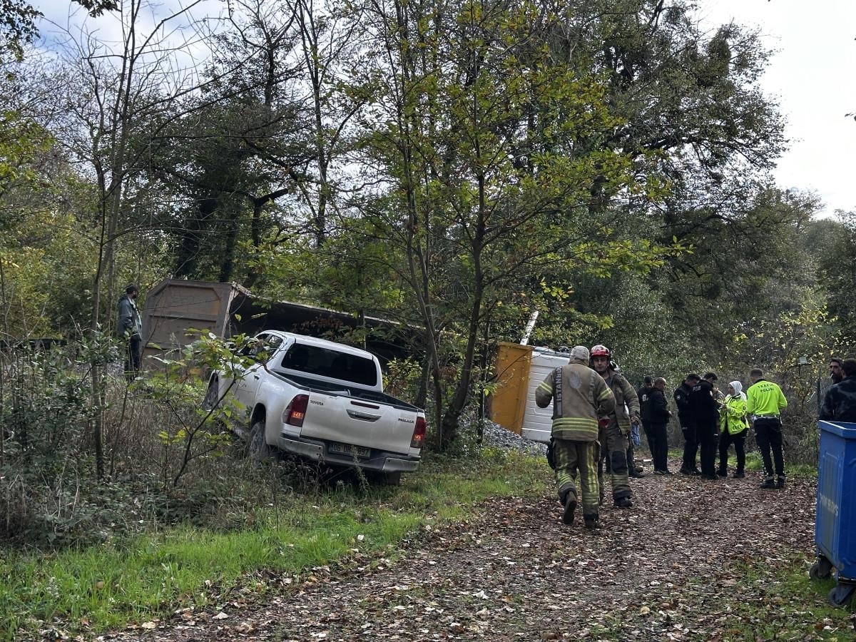 - Beykoz'da mıcır yüklü kamyon, toprak yolda devrildi.