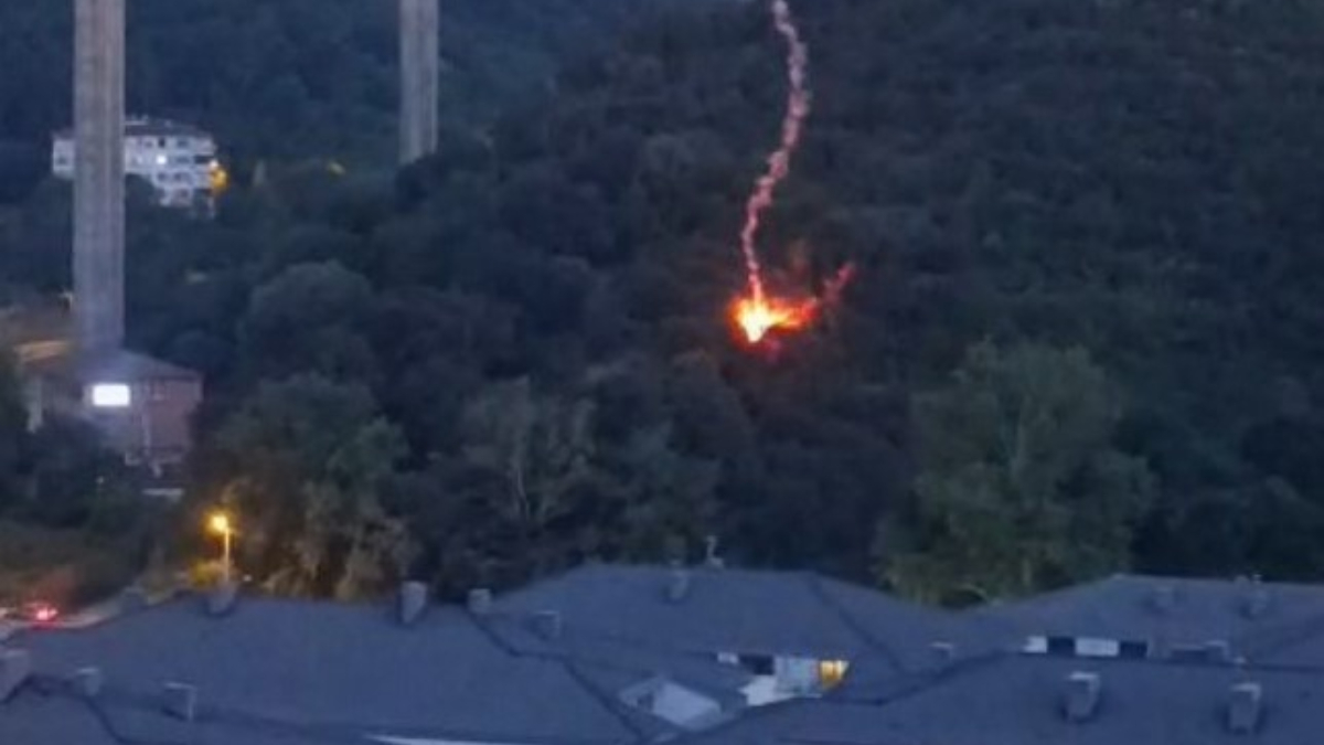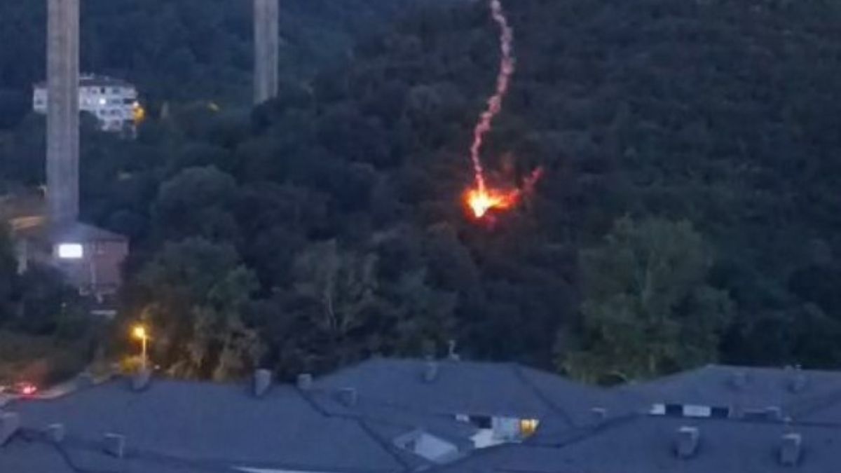 Yangın söndürme çalışmalarının devam ettiği sırada, havadan yanan bir cismin ormanlık alana düştüğü anlar çevredeki vatandaşlar tarafından cep telefonu kameralarıyla kaydedildi.