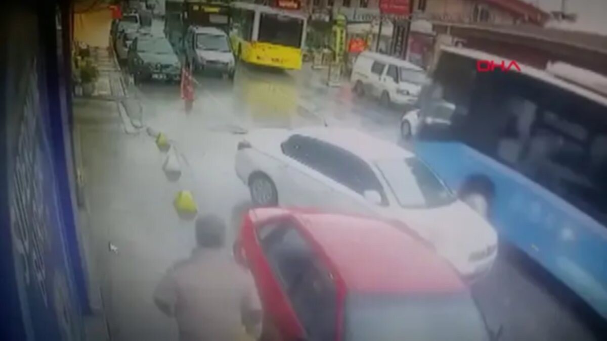 İçinde az sayıda yolcunun bulunduğu otobüs yokuş aşağı ilerlerken caddedeki araçlara ardından karşı yönden gelen başka özel halk otobüsüne çarparak durdu.