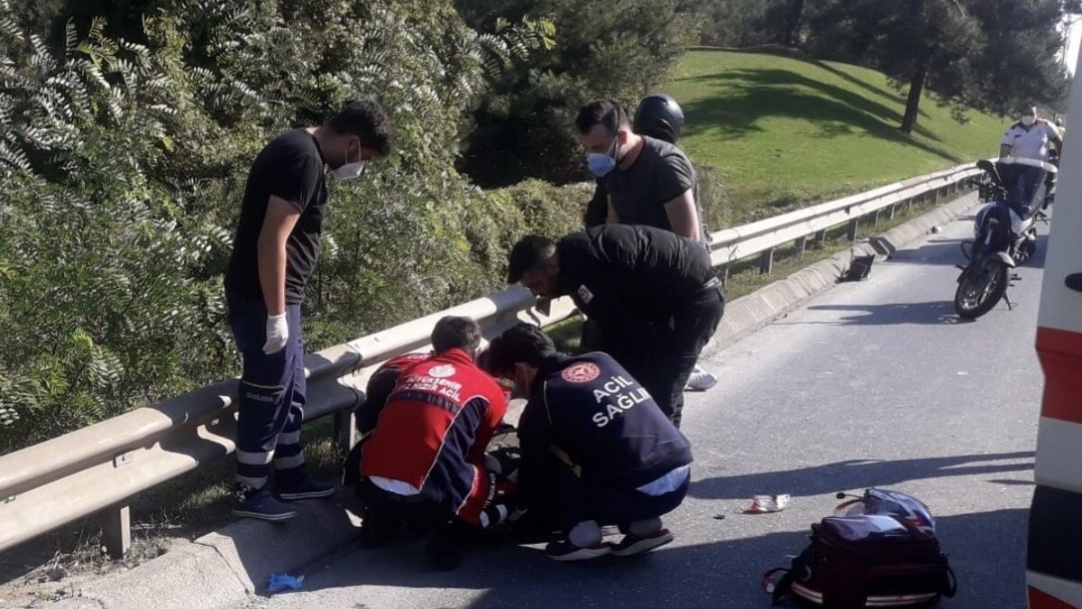 Beykoz TEM Otoyolu Kavacık istikametinde emniyet şeridinde ilerleyen motosiklet sürücüsü ile emniyet şeridine giren otomobil, saat 13.30 sıralarında çarpıştı.