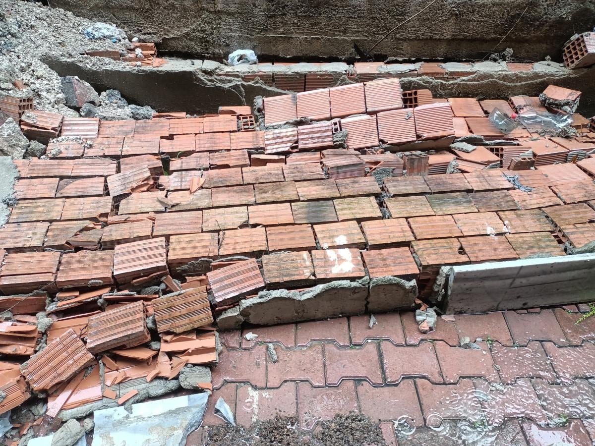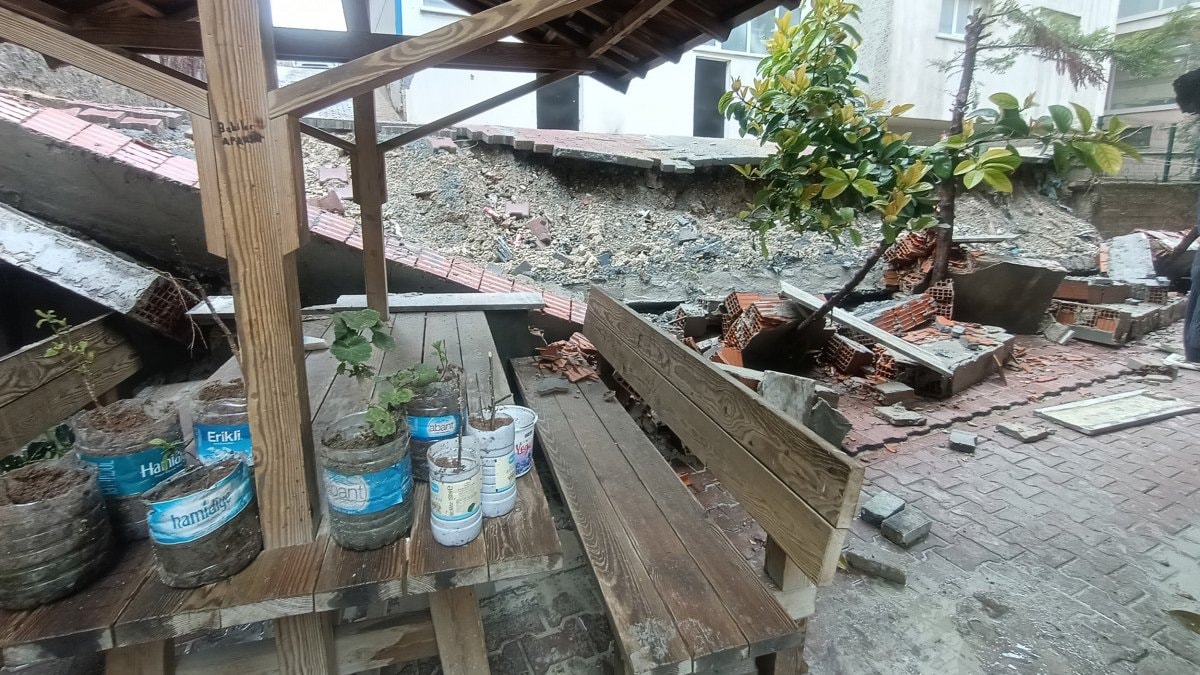 Dün gece etkili olan yağmurun ardından ise bahçe duvarı büyük bir gürültüyle çöktü.