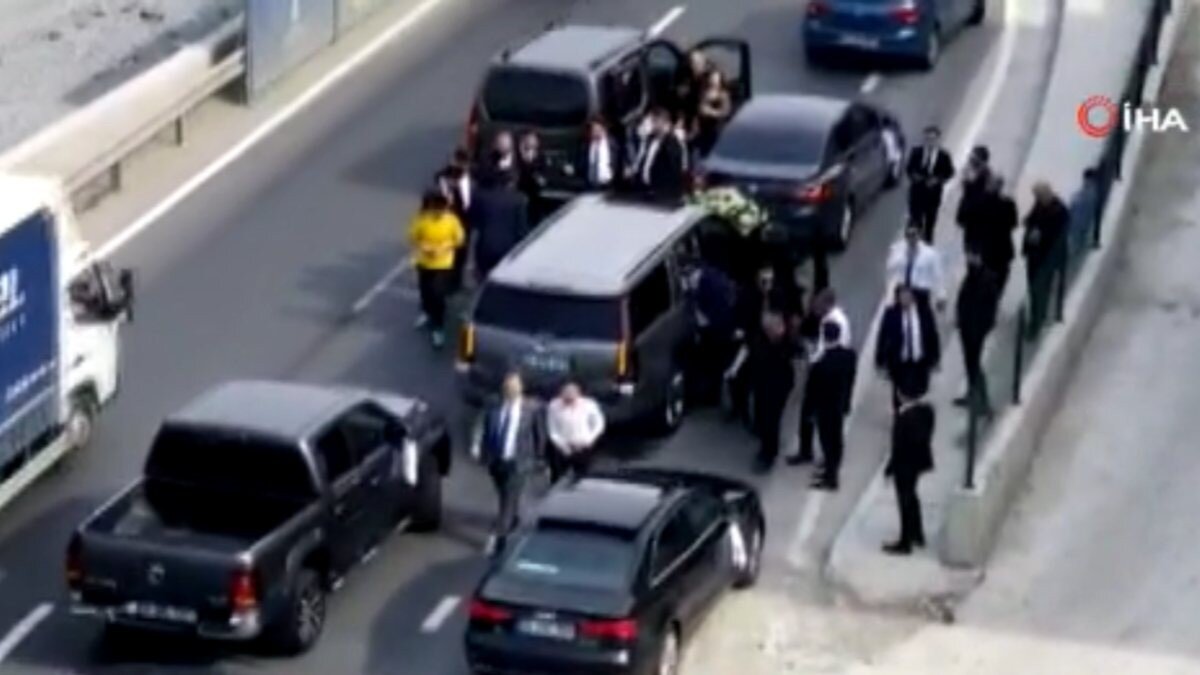 Yolu kapatan araçların arasında, çakarlı araçların da olduğu görüldü.