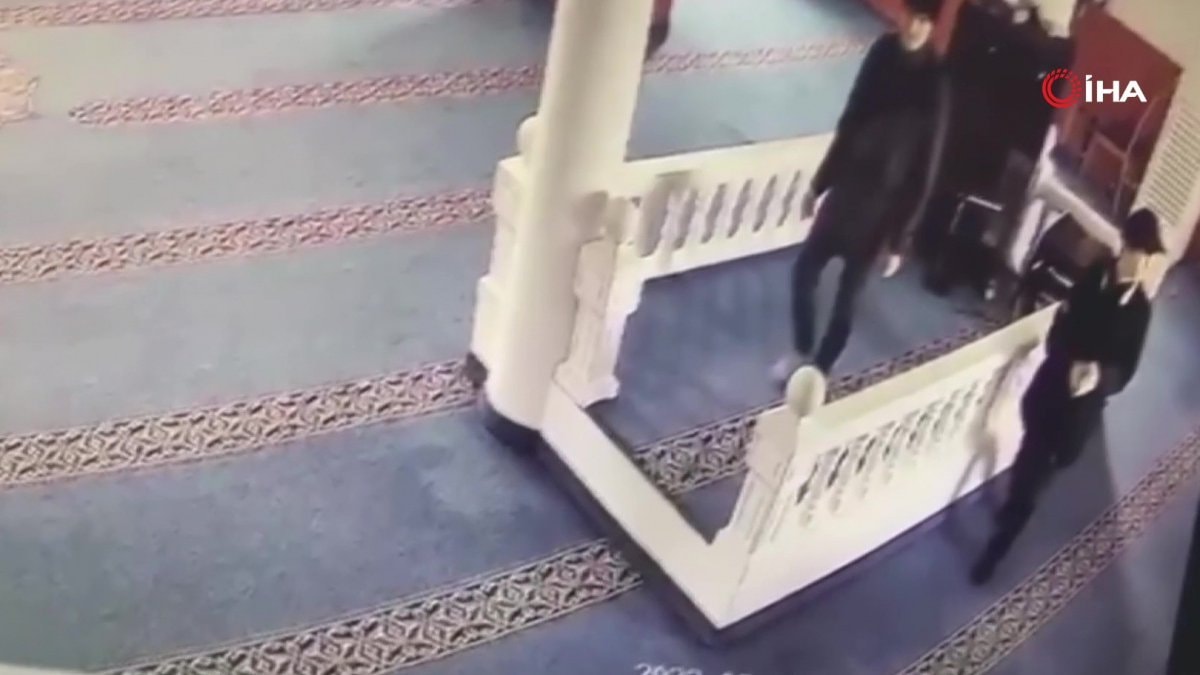 Hırsızlık anı ise caminin güvenlik kamerasıyla kaydedildi.