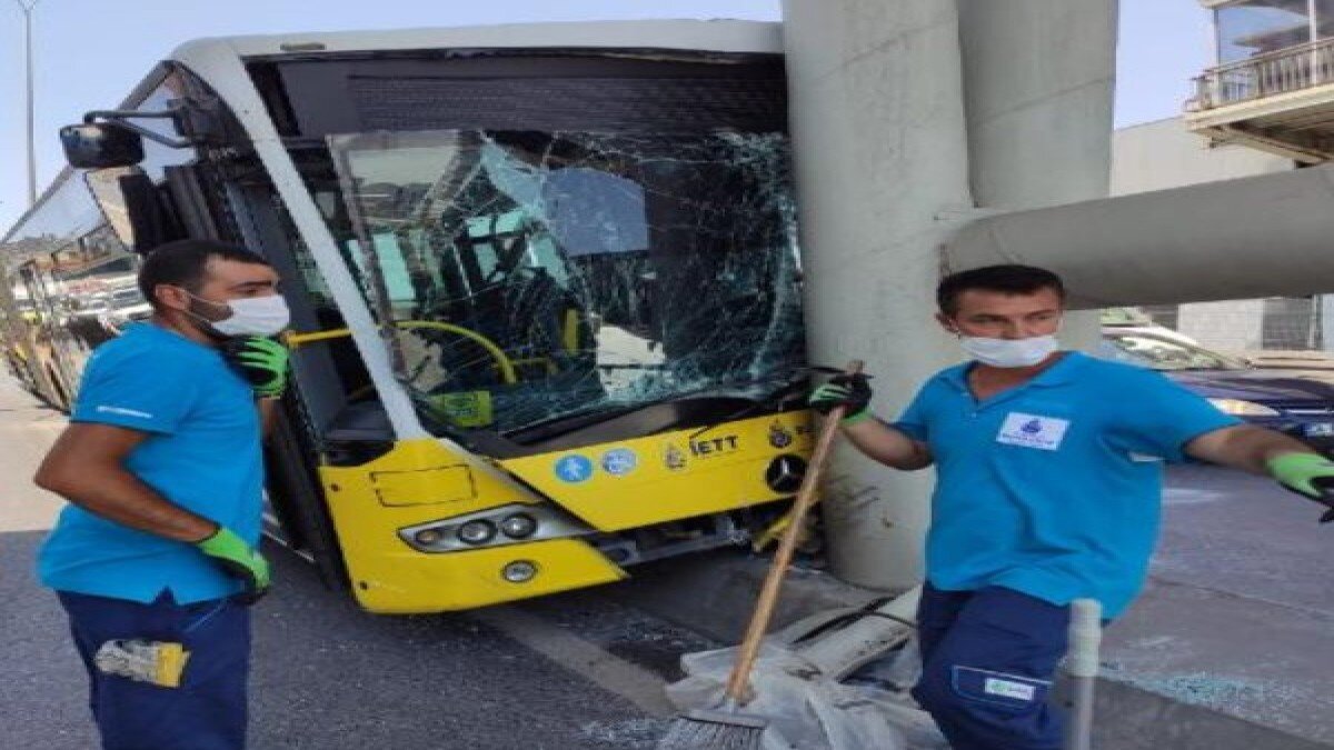 O sırada hareket eden otobüs ise Haramidere üst geçidinin ayağına çarparak durabildi.