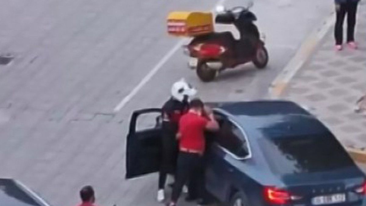 Motosiklet sürücüsünün otomobil şoförünün yanına gitmesiyle, ikili arasında kavga çıktı.