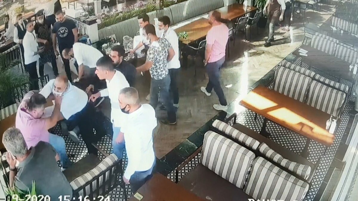 Silah tehdidinden korkan iş adamı ve beraberindekiler restoranı terk etmek istedi. Ancak diğer iş adamının adamları, çıkmalarına engel olarak onları darbetmeye başladı.
