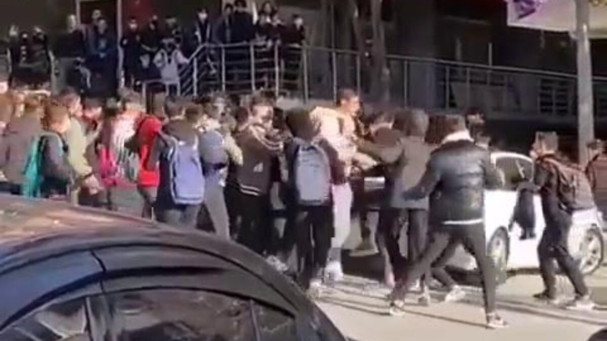 Öğrenciler birbirlerine tekme, tokat ve kemerlerle vurmaya başladı.