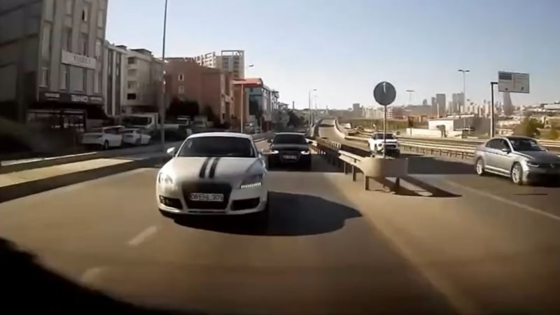 Aynı güzergah üzerinde seyreden başka bir aracın araç içi kamerasına yansıyan görüntülerde, aracın sürücüsü akan trafikte hızla ilerlediği, diğer araçları ve sürücülerine makas atarak tehlikeye soktuğu anlar saniye saniye kaydedildi.