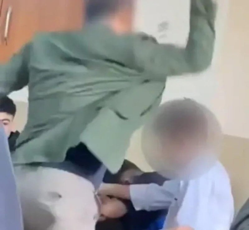 Öğrencisinin kafasını hedef alan öğretmen, dakikalarca bu eylemini sürdürdü.