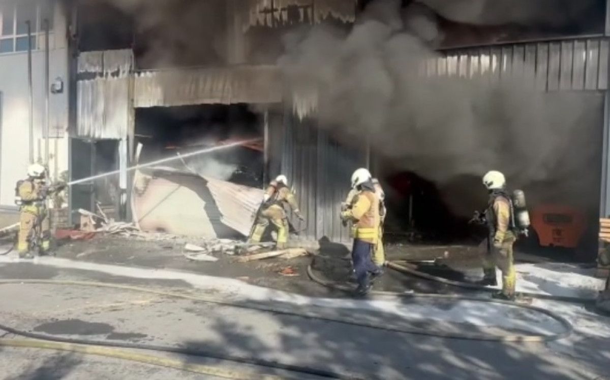 Yangın, bitişikteki iş yerine de sıçrarken, ekiplerin yoğun müdahalesiyle alevler kontrol altına alındı. Yangın söndürme çalışmaları havadan da görüntülendi.