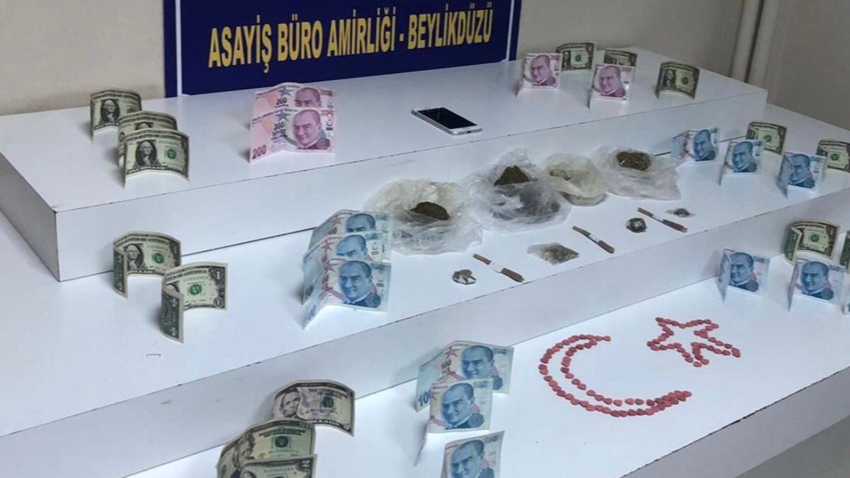 S.K. Esenyurt Koza Mahallesi'nde evine düzenlenen operasyonla yakalanarak gözaltına alındı. Evde yapılan aramada da 434 gram toz esrar, 98 adet ecstacy, 5 gram afyon sakızı, 3 gram bonzai ile 91 dolar ve 2 bin lira ele geçirildi.