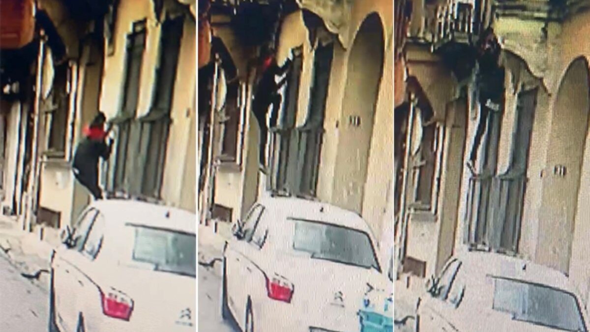 Beyoğlu’nda bir hırsız, vatandaşların gözü önünde bir binaya adeta “örümcek adam” gibi tırmandı.