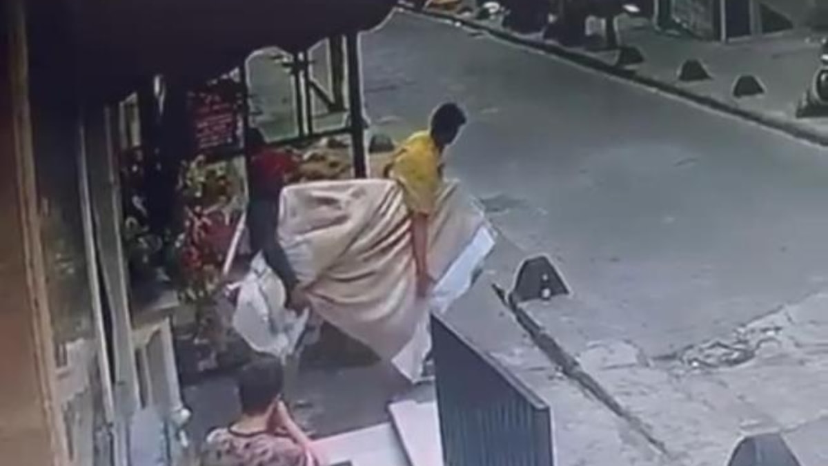 Komedi filmini aratmayan görüntüler güvenlik kamerasına yansıdı.
