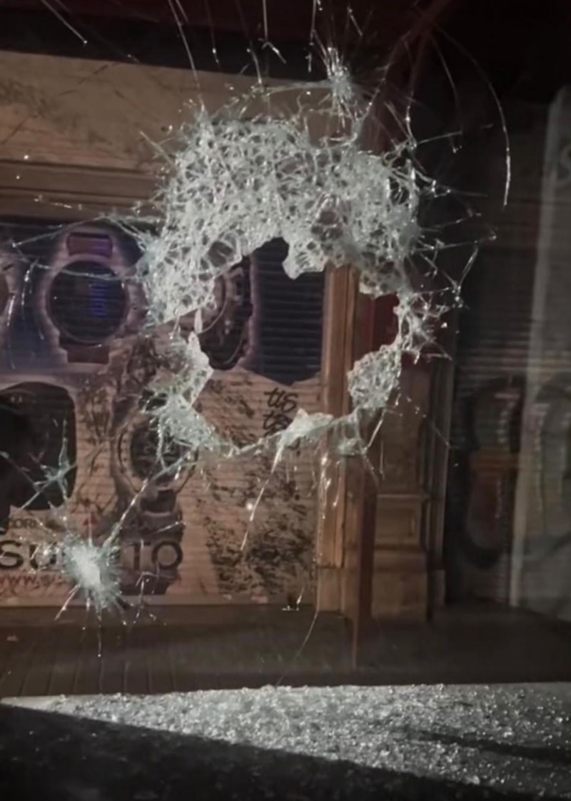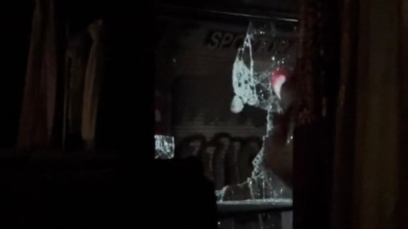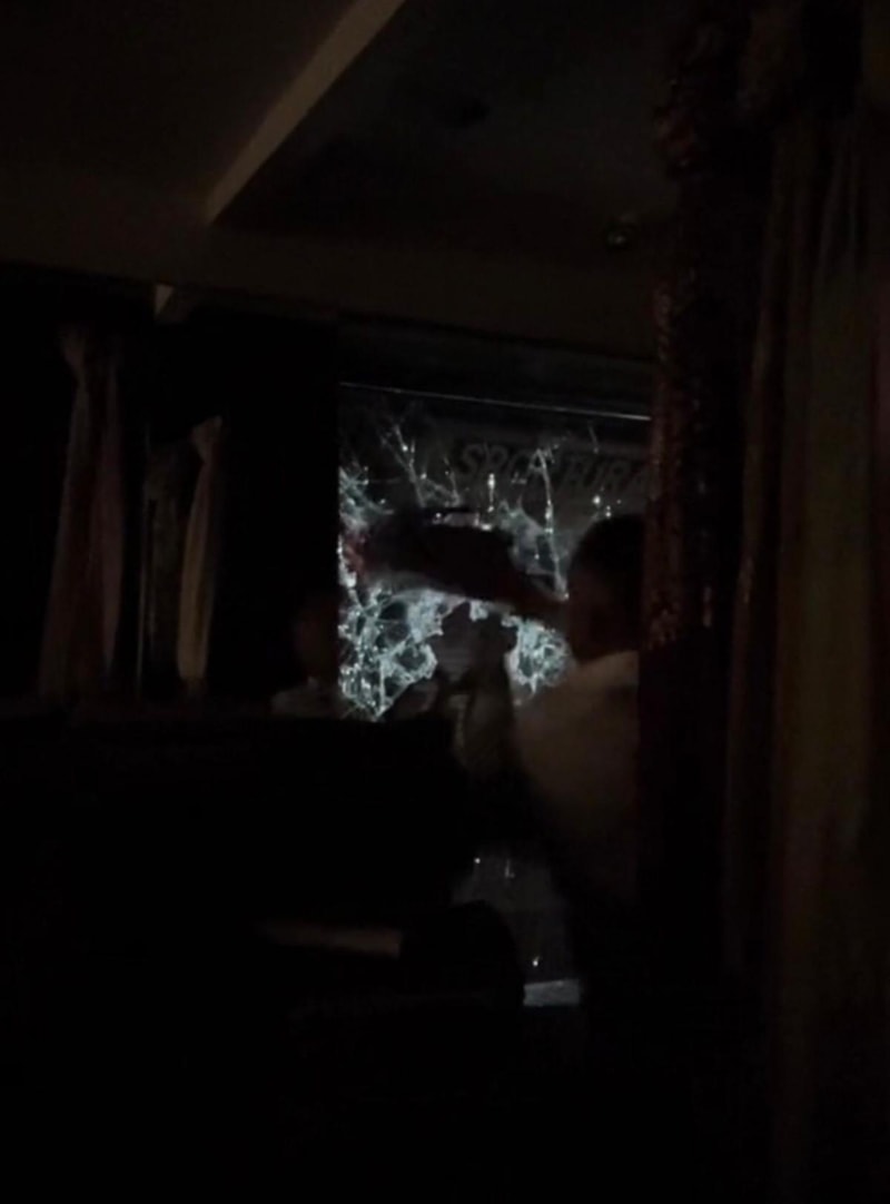Yangın tüpü ile camı kıran esnaf dükkandan çıktı. O anlar ise cep telefonu ile görüntülendi.