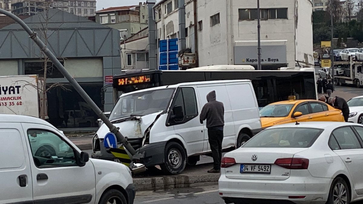 Beyoğlu'nda minibüs, direğe çarparak durabildi VİDEO