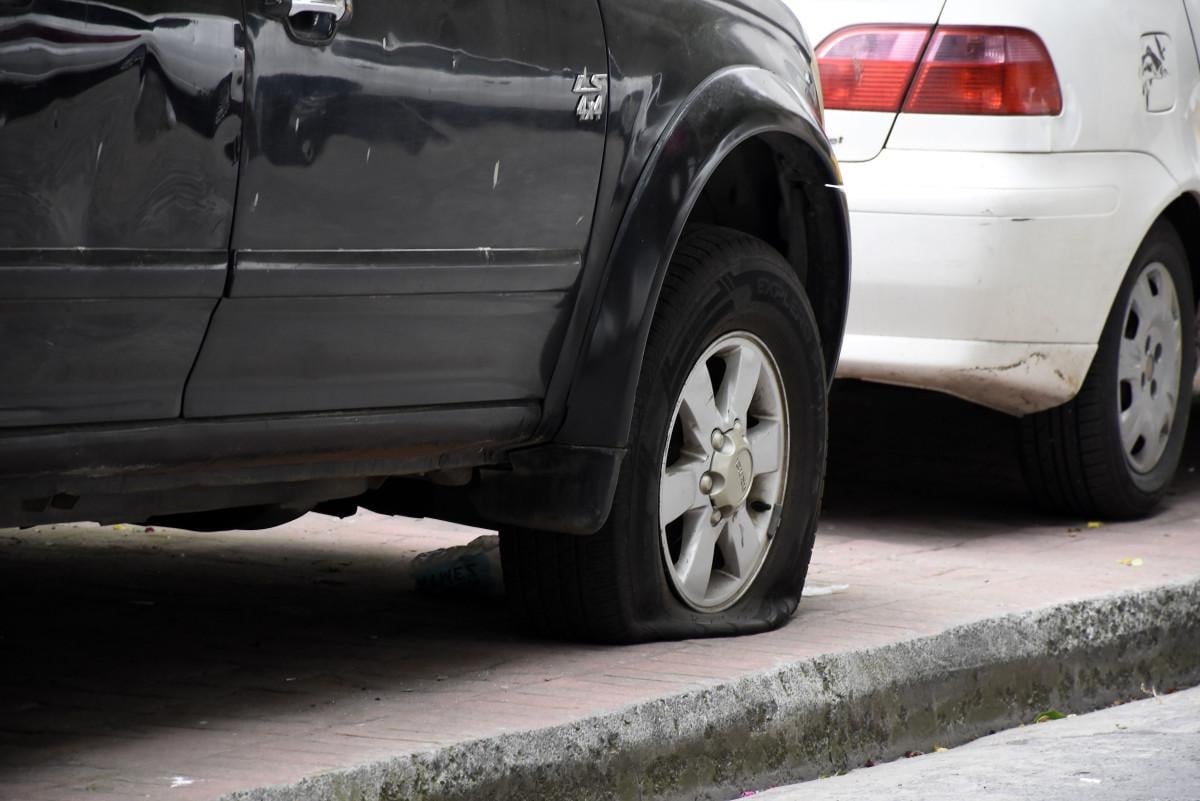 Bir ay falan oluyor bizim araba burada duruyordu. Yan tarafından anahtar ile komple çizmişler. Şu anda da gördüğünüz gibi milletin arabasının tekerini patlatmışlar. Kasten yapılan bir şey bu zaten, vatandaşa yazık günah. Kimin yaptığına şu anda bir şey söyleyemiyorum ama yapan insan bu mahalleden herhangi birisidir yani muhakkak. Kaldırıma park ediyorlar diye olabilir