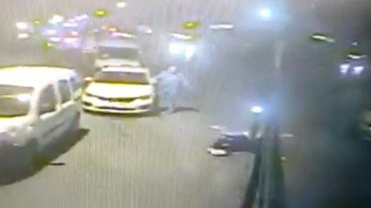 Taksi şoförünün, müşteriyi iterek yola savurduğu anlar anbean kameralara yansıdı.