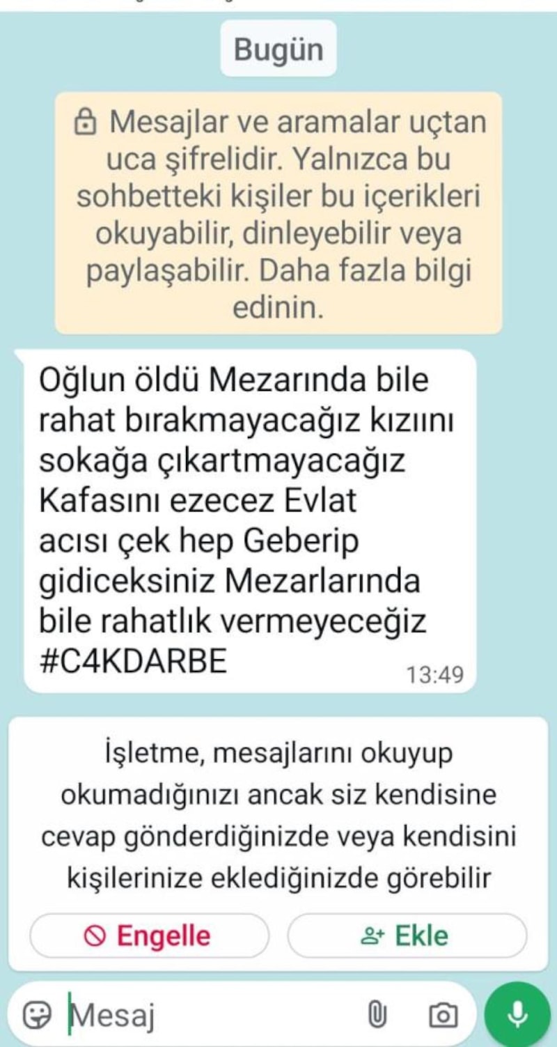 Keçiören ilçesinde yol verme tartışmasında bıçaklanarak yaşamını yitiren 22 yaşındaki Hakan Çakır’ın ailesi, tehdit ve hakaret içerikli mesajlarla karşı karşıya kaldıklarını açıkladı.
