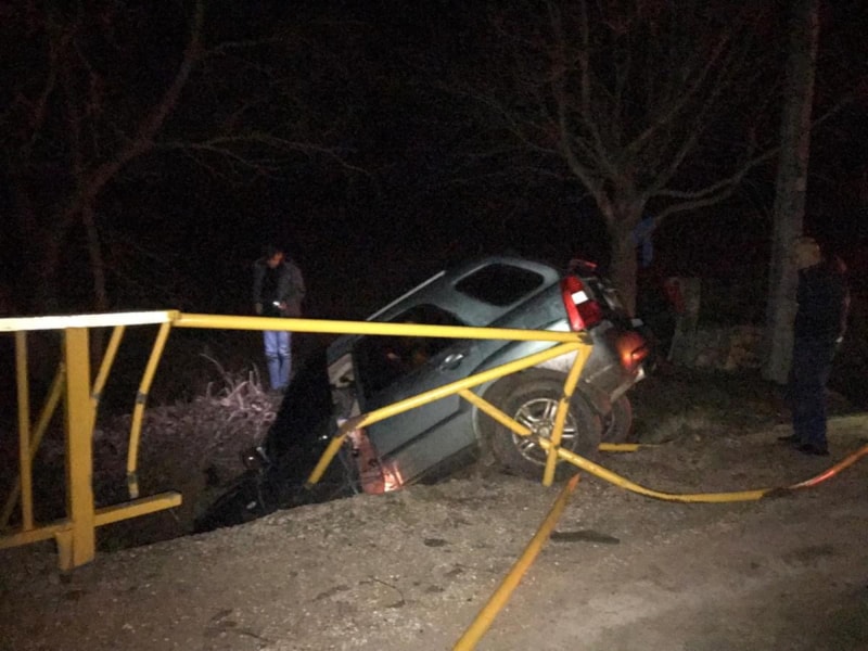 Kontrolden çıkan otomobil, önce yol kenarında bulunan bariyerlere, ardından köprüden aşağı düştü.