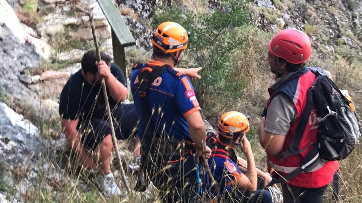 İki arkadaştan 24 yaşındaki Savaş Kaan Erden, kanyondan çıkamayınca, yüksel bir kayanın üzerine tırmandı. Buradan da inemeyen şahsın yardım istedi.