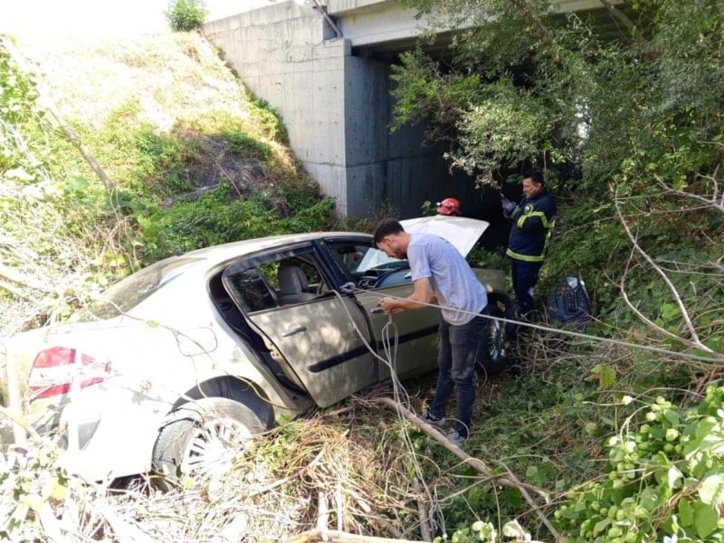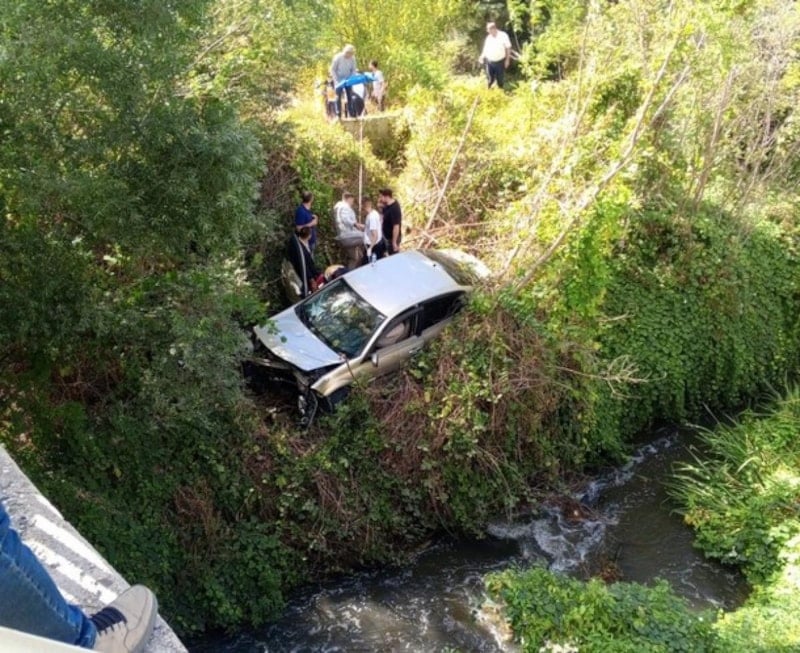 Kontrolden çıkan otomobil, yaklaşık 20 metre yükseklikten dere yatağına düştü. Kazada sürücü ağır yaralanırken, araçta bulunan 12 yaşındaki K.K. hafif şekilde yaralandı.