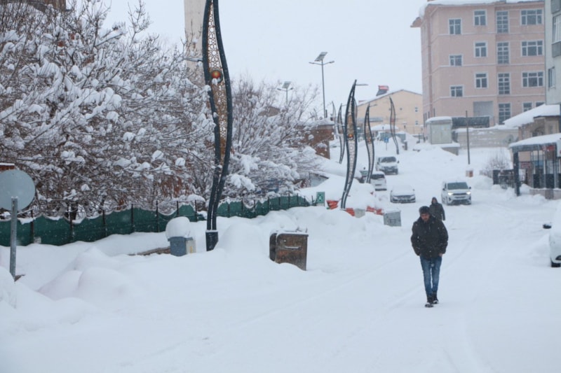 Yağışla birlikte 30 köy yolu ulaşıma kapandı. İlçe merkezi beyaza bürünürken kar kalınlığı yer yer yarım metreyi geçti.