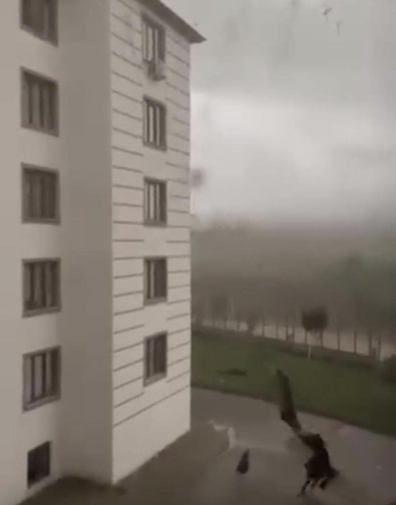Çatından kopan bir parça ise koşarak eve giden bir çocuğun üzerine düştü.
