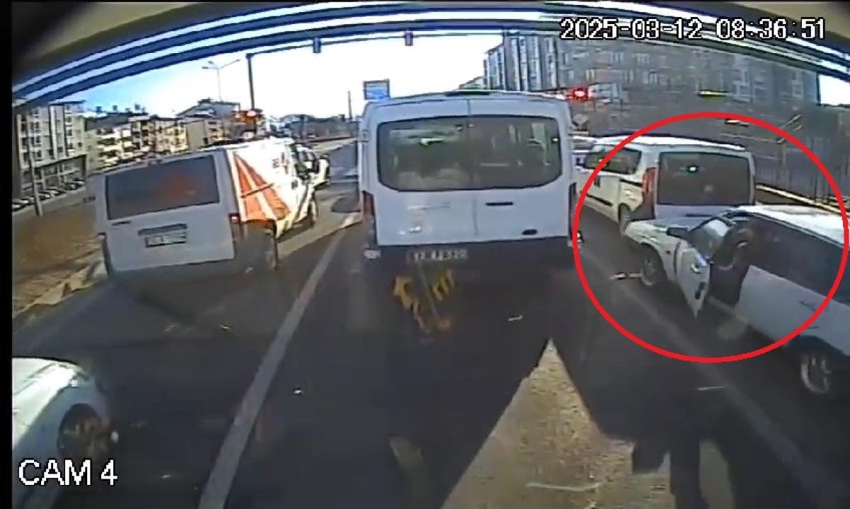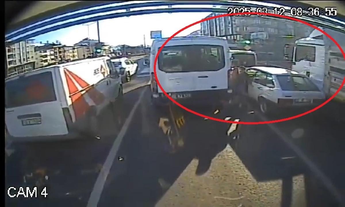 Aracını güvenli bir bölgeye çekerek park eden sürücünün bu olağanüstü çabası, çevredeki vatandaşlar tarafından şaşkınlıkla izlendi. Trafikte yaşanan bu sıra dışı anlar, bir halk otobüsünün güvenlik kamerasına saniye saniye yansıdı.