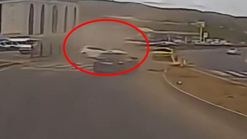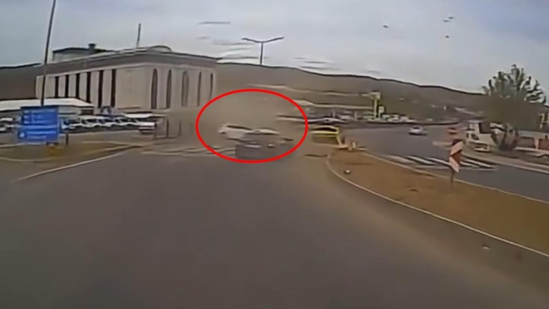 Bingöl'de kavşakta refüje çarpan otomobilin sürücüsünün yaralandığı kaza anı özel halk otobüsünün kamerasına yansıdı.