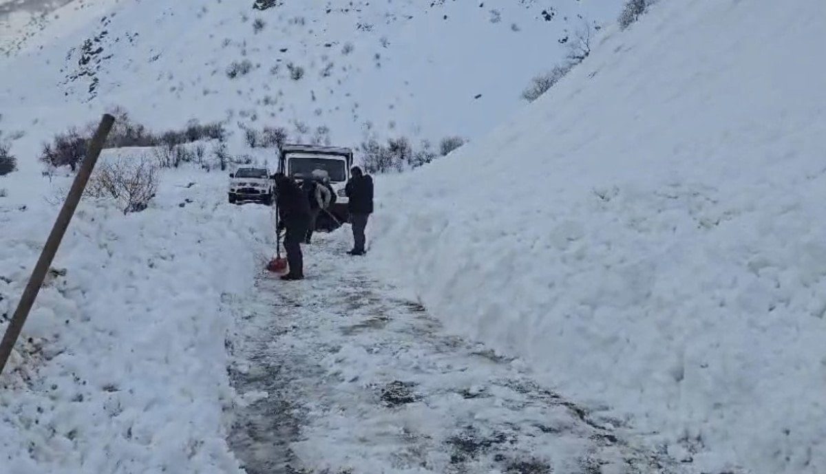 Araçlardan kürekleri çıkartan vatandaşlar karı 1 saat süren çalışma ile kaldırarak yolu ulaşıma açtı.