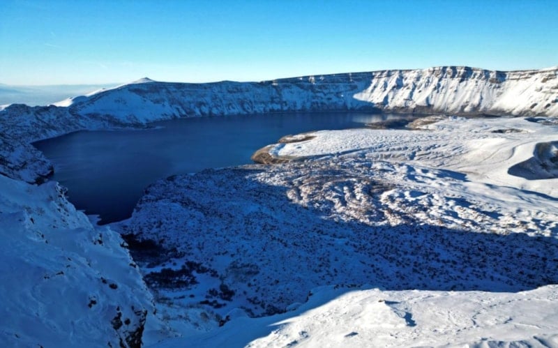 Van Gölü Havzası'nda, Bitlis'in sınırlarında yer alan ve her mevsim ziyaretçileri bulunan Nemrut Krater Gölü ile Türkiye'nin en yüksek üçüncü dağı olan Süphan, bölgede etkili olan kar yağışı ile birlikte seyrine doyumsuz bir manzaraya büründü.