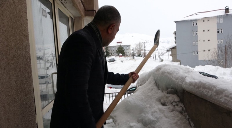 Kar kalınlığının 1,5 metreyi aştığı kentte çatılarda biriken kar kütleleri ve boyu 5 metreyi bulan buz sarkıtlarının temizlenmesi için bina sahipleri ve esnaf da çalışma başlattı.