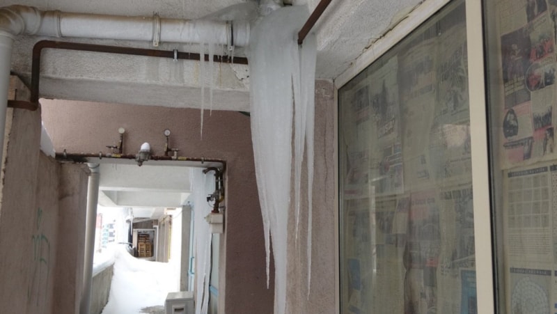 Hava sıcaklığının gece sıfırın altında 20 dereceye kadar düştüğü kentte, binaların çatılarında buz sarkıtları oluştu.