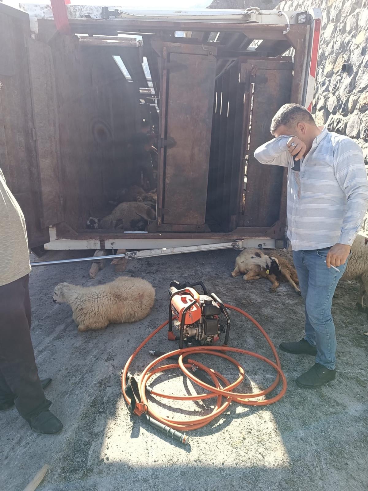 Sürücü Görkmen yara almadan kurtulurken, dorsedeki 100'e yakın keçi ile koyun öldü. Yaralanan 15 küçükbaş ise bölgeye gelen kasaplar tarafından kesildi.