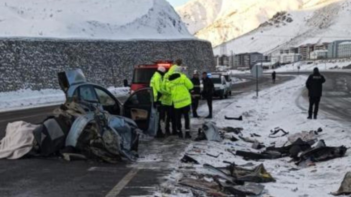 Kazada kağıt gibi ezilerek parçalara ayrılan otomobildeki şahıslardan biri hayatını kaybederken, 2 kişi de yaralandı.