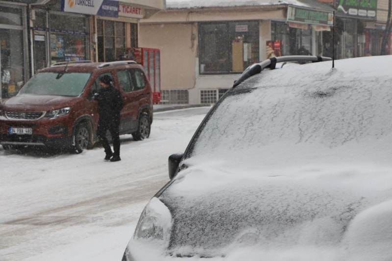 İlçe merkezi beyaza bürünürken, bazıları caddelerde yürümekte zorluk çekti.
