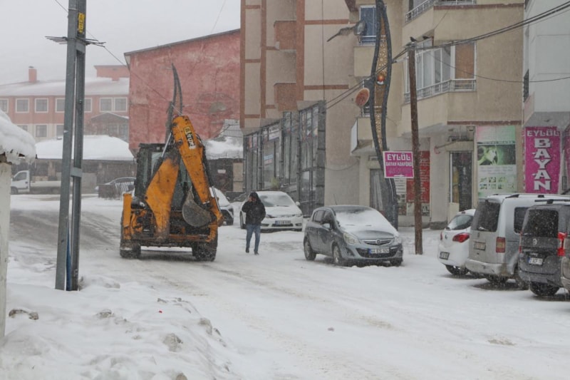 Karlıova ilçe merkezinde kar yağışı etkili olurken, kapanan 5 köyün yolunu ulaşıma açmak için de çalışmalar sürüyor.