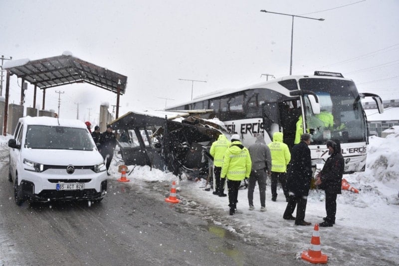 Diyarbakır istikametinden Van’a gelmekte olan otobüsün karıştığı kaza anı ise güvenlik kameraları tarafından saniye saniye görüntülendi.