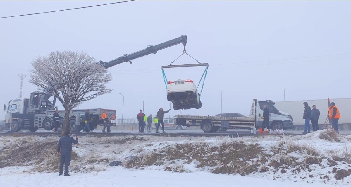 Yol kenarına savrulan araçlar vinçler yardımıyla tek tek bölgeden alınmaya başladı.