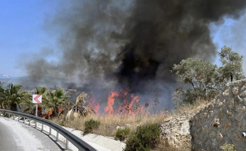 Türkiye sıcak hava dalgasının etkisine girerken, Bodrum Havalimanı kavşağında da yangın çıktı.