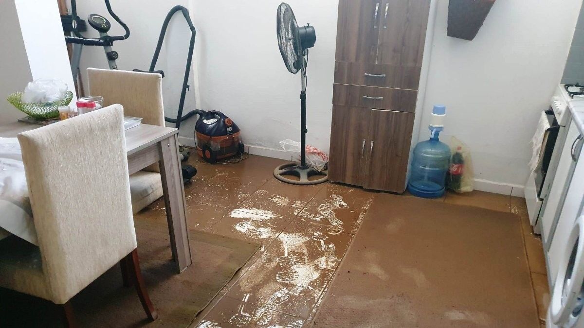 “15 dakika sağanak yağmur bastı. Geçen haftaki yağışta da aynı durumla karşılaştık. Ertesi günü belediye çalışanları geldiler, temizlediler ama çözüm bulunacağı söylendi. Eyvallah dedik, tamam dedik. Ama çözüm bulunamadı, bugün 15 dakika yağmur bir memlekete ne yapabilir? 4 daireyi birden bastı. Sadece bizim daire değil. Komşunun dairesinde eşiği biz kırdık.