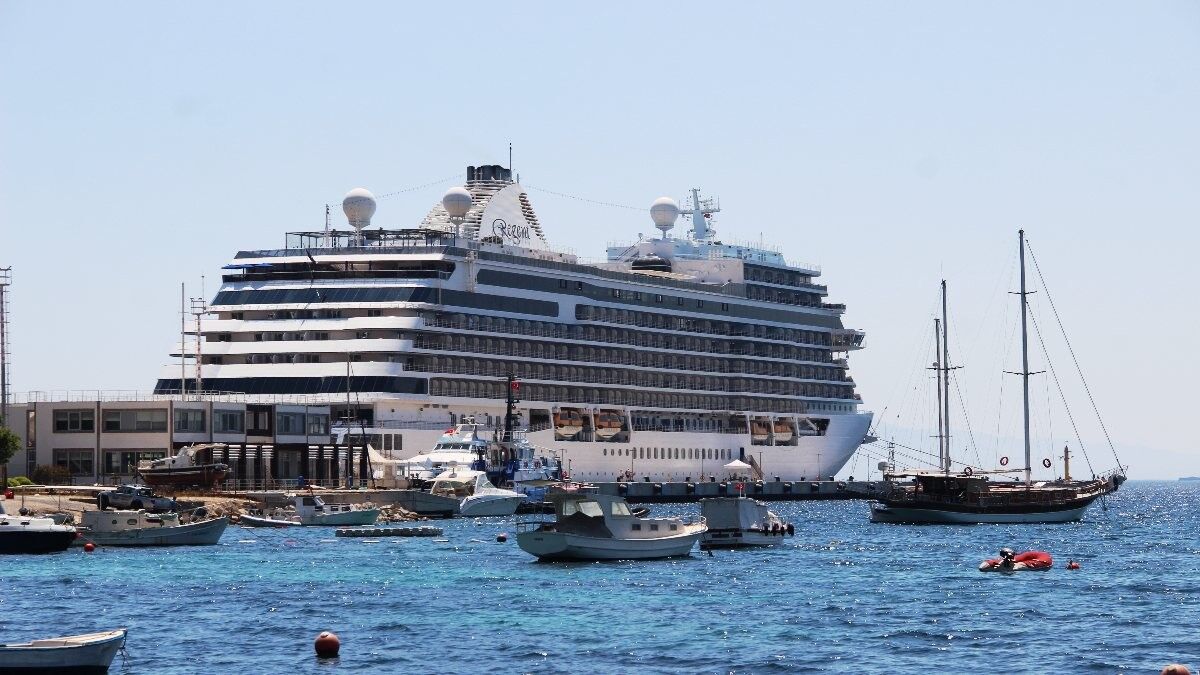 Marshall Adaları bayraklı 224 metre boyundaki Seven Seas Explorer, sabah saatlerinde Kuşadası Limanı'ndan Bodrum gemi yanaşma iskelesine demir attı.