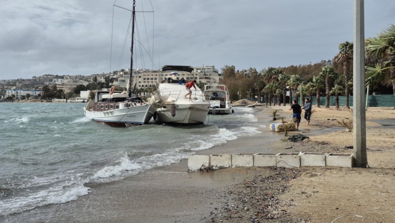 Gümbet Koyu'nda ayrıca 5 metrelik iki sandalın su aldığı, bir şişme botun kıyıya sürüklendiği gözlendi.