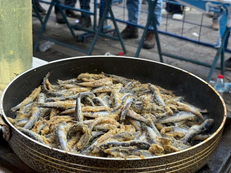 Festivalde, mısır unuyla hazırlanan 3 ton hamsi, tavalarda pişirilip dağıtıldı. Ekmek arası hamsi yemek isteyenler, 100 metreyi aşan kuyruk oluşturdu.