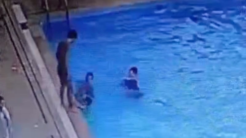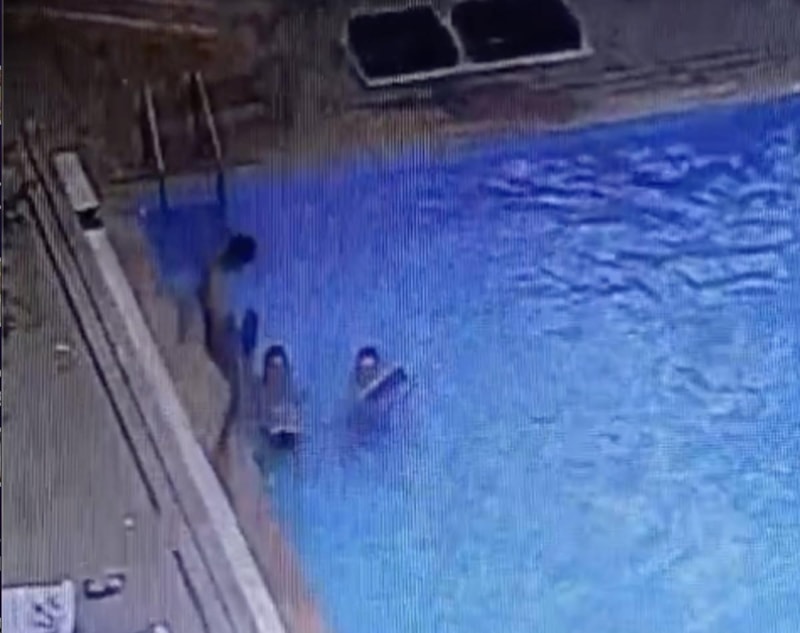 Ve hatta havuzdan çıkmasına yardım etmiş gibi görünerek, tekrar suya iterek işkencelerine devam ettiler.