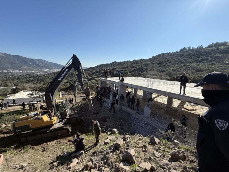 Muğla’nın Bodrum ilçesine bağlı Gürece Mahallesi’nde, 3. derece doğal SİT alanı içerisinde yer alan kaçak yapıların yıkımı sırasında gergin anlar yaşandı.