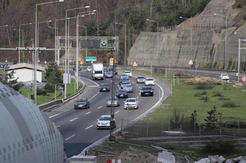 Anadolu Otoyolu’nun Bolu Dağı Tüneli geçişinde Ankara istikametinde bayram tatili için memleketlerine gitmek isteyen tatilcilerin yoğunluğu sürüyor.