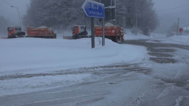 Karayolları ekipleri, rampaların ve virajların bulunduğu Bolu Dağı geçişini Düzce tarafından kar küreme çalışmalarının yapılabilmesi için ağır tonajlı araçların geçişine kapattı.